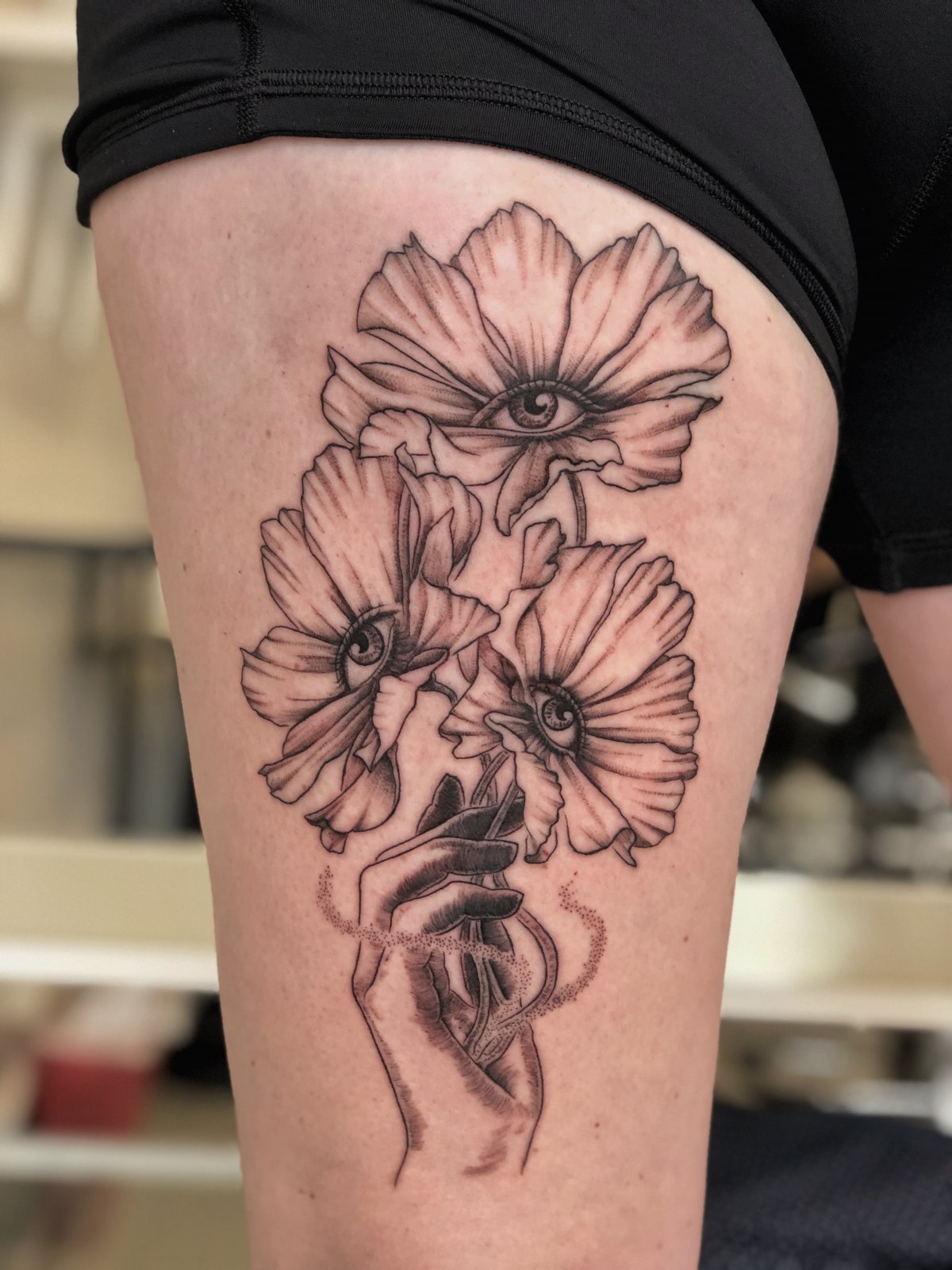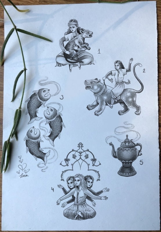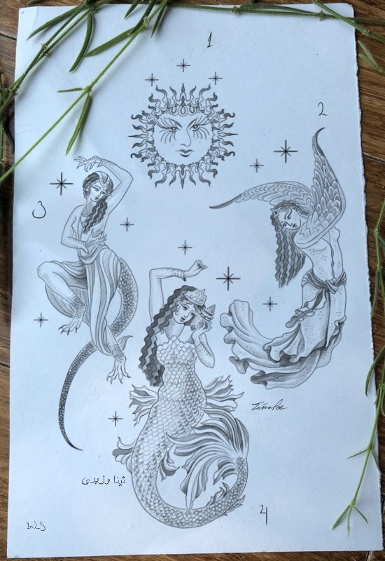 Tina Vaziri Poe is an Iranian (Persian) artist and the owner of Moon Tattoo in Austin, Texas. Exploring storytelling and connections through the ancient transformative art of tattooing since 2016. If she is not tattooing or in her art studio drawing or painting, she is found among the flowers in her garden.