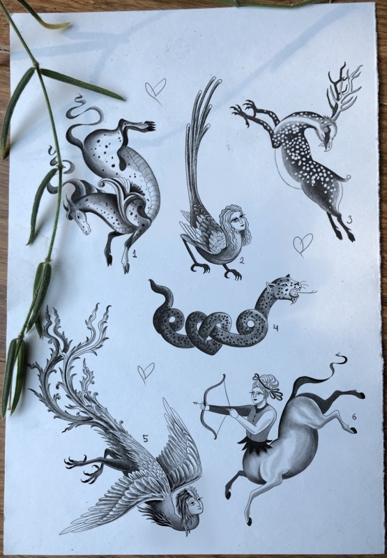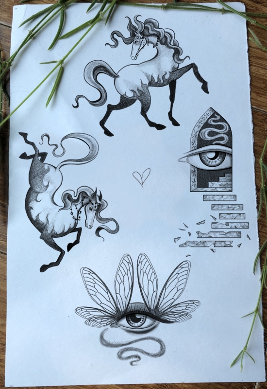 These designs are personal favorites that I will tattoo multiple times. I can make small adjustments to make them unique. Flash is always prioritized in my schedule. Subscribe to my newsletter to see the latest ones.