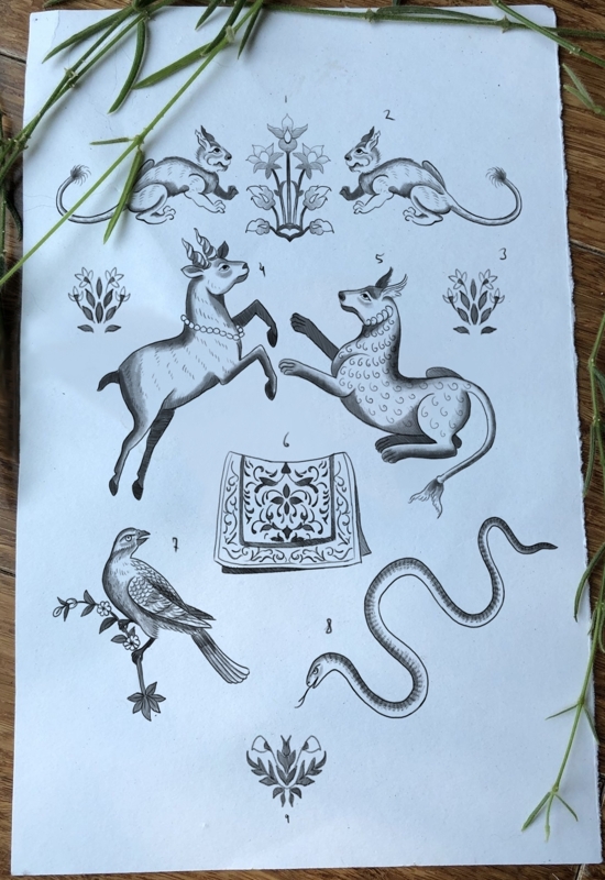 (1) Doniya 7" $700, (2) Utana 7" $500, (3) Vidarna 8" $800, (4) Bardiya 5" $500, (5) Simurgh 9" $900, (6) Farnah 7" $700